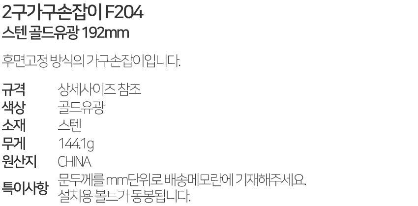 2±¸°¡±¸¼ÕÀâÀÌ F204 ½ºÅÙ °ñµåÀ¯±¤ 192mm