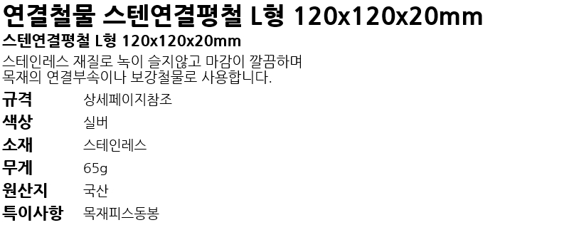 ¿¬°áö¹° ½ºÅÙ¿¬°áÆòö LÇü 120x120x20mm