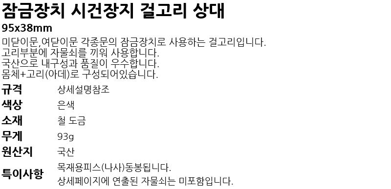 Àá±ÝÀåÄ¡ ½Ã°ÇÀåÄ¡ °É°í¸® »ó´ë 95mm