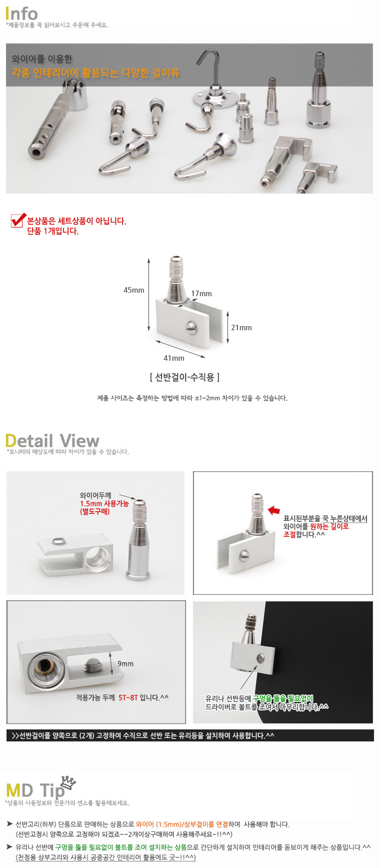 ¿ë µµ : ¼±¹Ý°ÉÀÌ(¼öÁ÷¿ë)·Î ¿ÍÀ̾î 1.5mm¸¦ ³¢¿ö¼ »ç¿ëÇÏ´Â ÇÏºÎ°í¸®·Î °¢Á¾ ÀÎÅ׸®¾î¿¡ ´Ù¾çÇÏ°Ô È°¿ëÀÌ