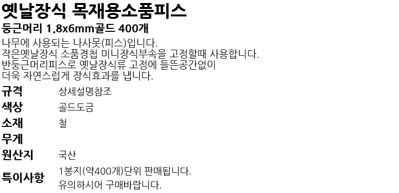 ¿¾³¯Àå½Ä ¸ñÀç¿ë¼ÒǰÇǽº µÕ±Ù¸Ó¸® 1.8x6mm°ñµå 400°³